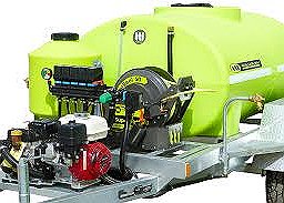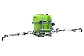 A 500-liter petrol-powered boom sprayer is