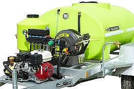 A 500-liter petrol-powered boom sprayer is